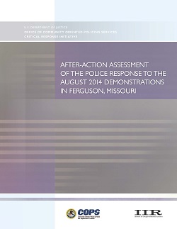 | On August 9, 2014, Officer Darren Wilson of the Ferguson (Missouri) Police Department shot and killed Michael Brown. This tragic incident and the ensuing weeks of demonstrations and riots launched a national debate about racial profiling, use of force, militarization, and policing in general. The After-Action Assessment of the Police Response to the August 2014 Demonstrations in Ferguson, Missouri examines the law enforcement response to the mass demonstrations during the first 17 days, focusing on the primary responders, the St. Louis County Police Department, the St. Louis Metropolitan Police Department, the Missouri State Highway Patrol, and the Ferguson Police Department. In this report, the after-action assessment team composed of subject matter experts identifies findings and provides lessons learned based on interviews, media content analysis, and literature reviews. This report also delves into specific topic areas from use of force to communications to policies and procedures. Published on 09/03/2015. Modified on 09/22/2015.By Institute for Intergovernmental Research (IIR)Categories: Police OperationsLanguage: EnglishLow stockPublic link